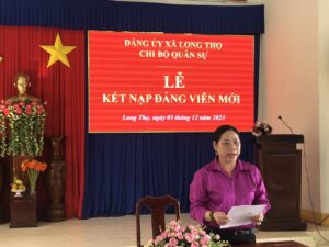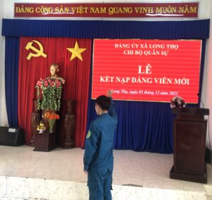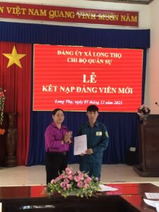 Ngày 5/12/2023, Chi bộ Quân sự đã tổ chức lễ kết nạp đảng viên mới cho quần chúng ưu tú Võ Chí Tâm. Tham dự buổi lễ có đồng chí Trần Thu Hạnh, Bí thư Đảng ủy, Bí thư Chi bộ Quân sự cùng toàn thể đảng viên trong chi bộ.