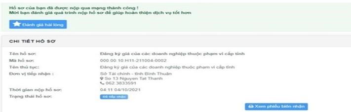 Lưu lại Mã hồ sơ để tra cứu tình trạng hồ sơ