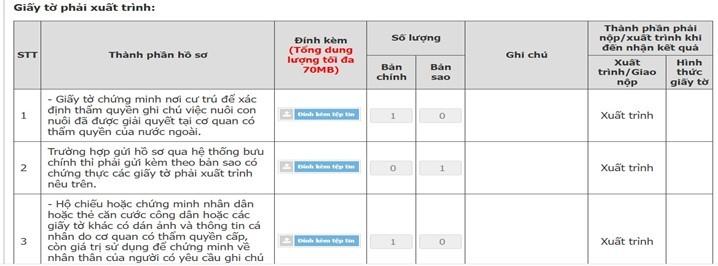 Bước 3: Điền thông tin theo mẫu (nếu có) hoặc số hóa các hồ sơ, tài liệu theo thành phần hồ sơ yêu cầu (định dạng pdf, jpeg… có thể scan hoặc chụp) và tải file lên hệ thống