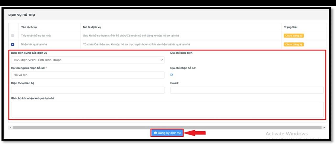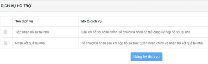 Bước 5: Công dân có thể chọn dịch vụ hỗ trợ để nhận kết quả tại nhà (nếu có).