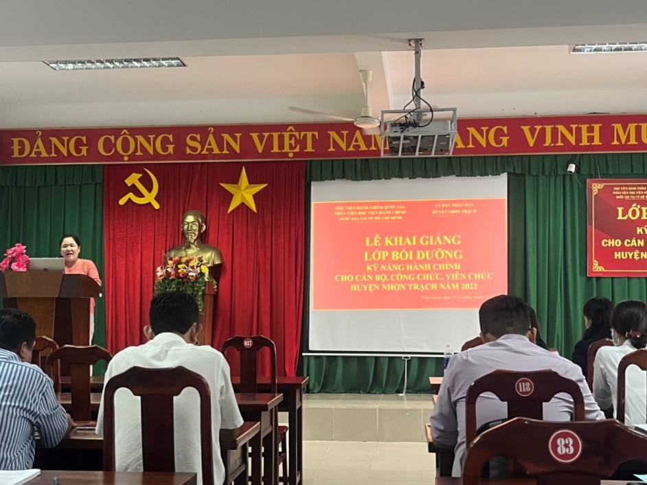 Trong năm 2022, huyện đã cử CBCCVC tham dự các lớp Bồi dưỡng như: kiến thức quản lý nhà nước theo tiêu chuẩn ngạch chuyên viên (32 người); Kỹ năng lãnh đạo quản lý cấp phòng và cán bộ cấp xã (21 người); Nghiệp vụ Thanh tra viên và Trưởng đoàn thanh tra (04 người); Chuyên sâu cho các chức danh công chức cấp xã (42 người); Kỹ năng đối ngoại và Nghiệp vụ Lễ tân dành cho cán bộ, công chức, viên chức của huyện (87 người); Đại biểu HĐND huyện Nhơn Trạch nhiệm kỳ 2016-2021 (35 đại biểu); Kiến thức ANQP cho đói tượng 2 và 3 (55 cán bộ, công chức).