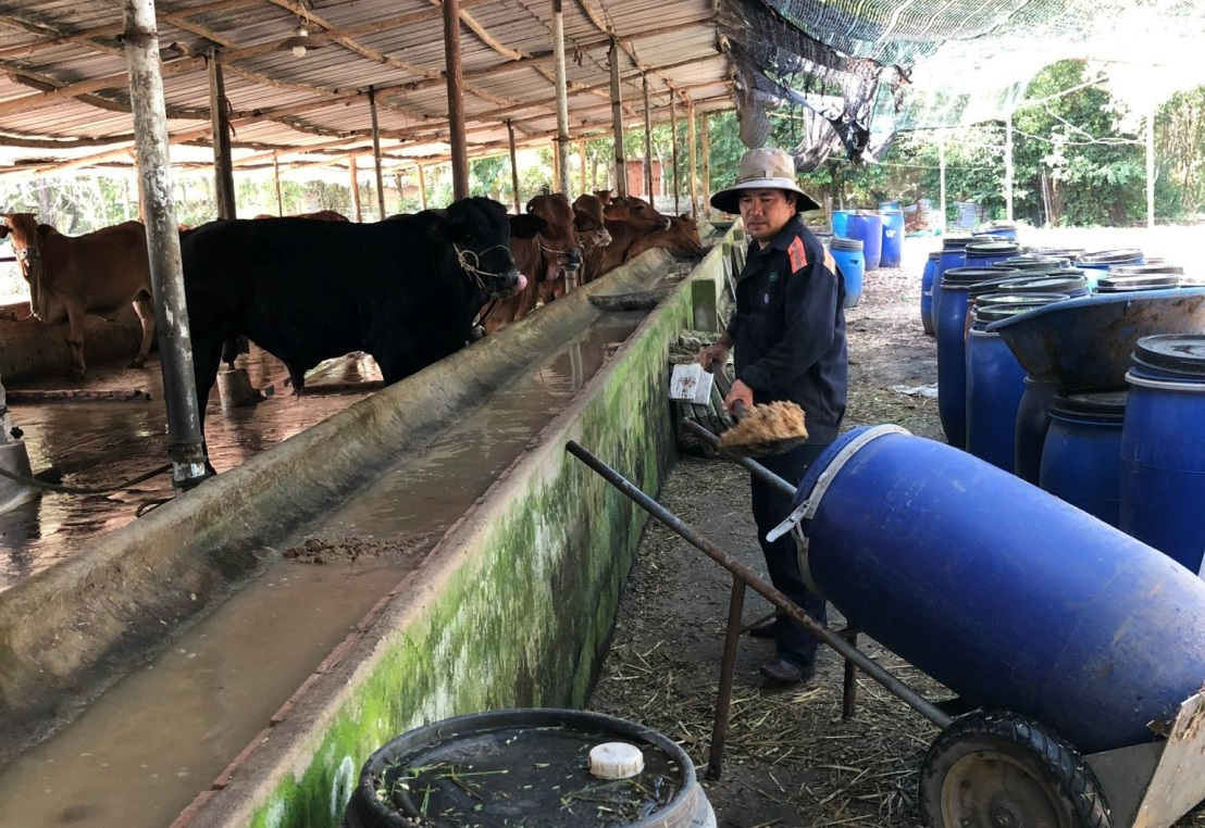 Hiện anh đang có 2 ha đất trồng các loại cỏ tạo nguồn thức ăn tại chỗ, bên cạnh đó, anh cũng tận dụng lượng phân từ trang trại nuôi heo bên cạnh làm phân bón trồng cỏ. Ngoài bán bò giống và bò thịt, anh còn thu về từ 50 – 60 triệu đồng/năm nhờ bán phân bò cho người dân tại địa phương; anh cũng bán cỏ cho các hộ nuôi bò khi vào mùa khô, mỗi ngày thu nhập từ 200 – 300 ngàn đồng, nhờ vậy tiết kiệm khoảng 85 triệu đồng tiền mua thức ăn cho bò. Sau khi trừ các chi phí, mỗi năm anh thu lợi nhuận khoảng 300 triệu đồng. Để nâng cao thu nhập, phát triển kinh tế, anh dự định trồng 4 ha tre để lấy măng, hiện tại đã trồng được 100 bụi tre xen kẻ với trồng cỏ, sau 02 năm có thể thu hoạch.