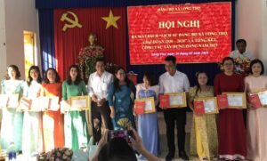 Tin, ảnh: Bà Trần Thu Hạnh – Bí thư Đảng ủy xã tăng giấy khen 03 tập thê có thành tích xuất sắc năm 2023.