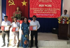 Cũng trong chương trình Hội nghị, Đảng bộ xã Long Thọ tổ chức tổng kết công tác xây dựng Đảng năm 2023. Đảng bộ xã có 12 chi bộ trực thuộc, tổng số 285 đảng viên. Tình hình tư tưởng đảng viên ổn định, công tác quản lý và phát triển đảng viên mới được Đảng ủy xã chú trọng thực hiện Trong năm 2023, Đảng bộ xã đã phát triển được 11 đảng viên mới, đạt 100% so với chi tiêu giao. Quán triệt và triển khai học tập chuyên đề năm 2023 “Học tập và làm theo tư tưởng, đạo đức, phong cách Hồ Chí Minh về tăng cường trách nhiệm của cán bộ, đảng viên trong thực hiện nhiệm vụ được giao, đẩy mạnh cải cách hành chính, góp phần nâng cao chỉ số năng lực cạnh tranh cấp tỉnh, thực hiện thắng lợi Nghị quyết Đại hội Đảng bộ tỉnh lần thứ XI và Nghị quyết Đại hội Đảng bộ huyện lần thứ VI (nhiệm kỳ 2020-2025). Ban Thường vụ Đảng ủy xã cũng đã lãnh đạo, chỉ đạo tổ chức tốt công tác kiểm điểm, đánh giá chất lượng tập thể và cá nhân theo Quy định số 09-QĐ/HU ngày 30/11/2023 của Ban Thường vụ Huyện ủy Nhơn Trạch, về việc kiểm điểm và đánh giá, xếp loại chất lượng đối với tập thể, cá nhân trong hệ thống chính trị; Tổ chức thành công tốt đẹp Hội nghị giữa nhiệm kỳ thực hiện Nghị quyết Đại hội Đảng bộ xã lần thứ V, nhiệm kỳ 2020-2025…Đảng ủy chỉ đạo, lãnh đạo triển khai thực hiện chương trình, kế hoạch kiểm tra, giám sát năm 2023 của Cấp ủy và UBKT Đảng ủy đạt 100% theo chi tiêu năm…